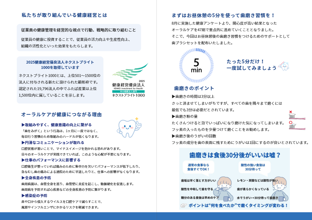 ふたば産業は社員の健康を口腔内からサポートできればと考えています!🦷